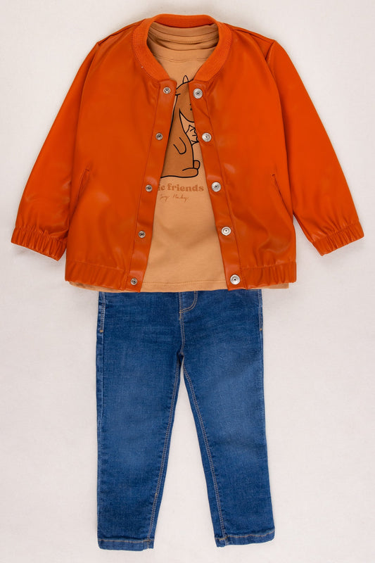 Conjunto 3 Piezas Con Chaqueta en Cuero