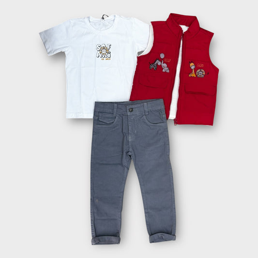 Conjunto 3 Piezas Chaleco Rojo